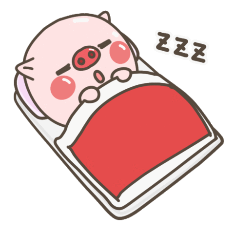 A cute cartoon pig sleeps soundly under a red blanket, with 'Zzz' floating above its head, indicating deep sleep.
