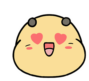 A charming, round, yellow bee-like creature with heart-shaped eyes, a wide smile, and rosy cheeks, expressing pure joy and affection.