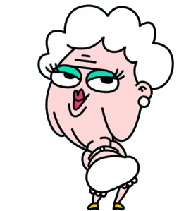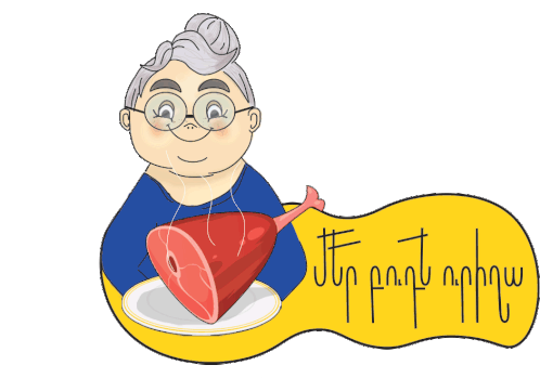 An animated sticker featuring a cartoon elderly woman, often called granny, holding a plate with a piece of ham, associated with Beeline 2020.