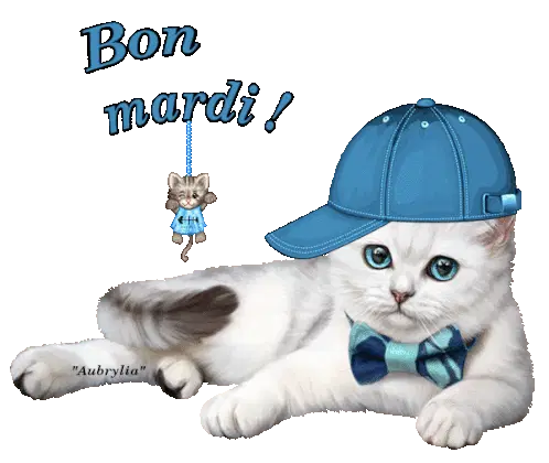 loadingMountainsChat Bon Mardi ! Chaton en casquette bleue