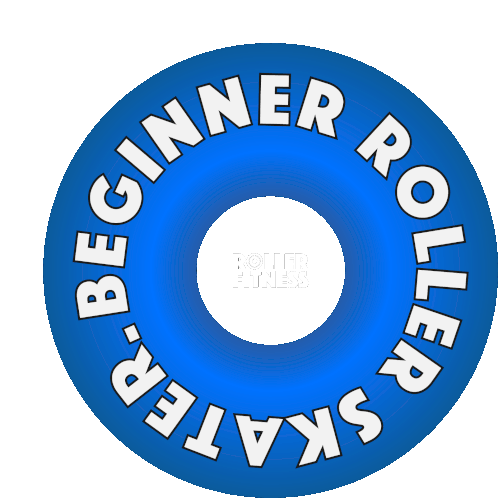 An animated blue roller skate wheel spins, featuring the text 'BEGINNER ROLLER SKATER' and 'ROLLER FITNESS'.