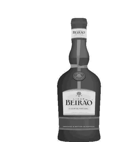 A bottle of the Portuguese liqueur Licor Beirão with a red arrow pointing to its label.