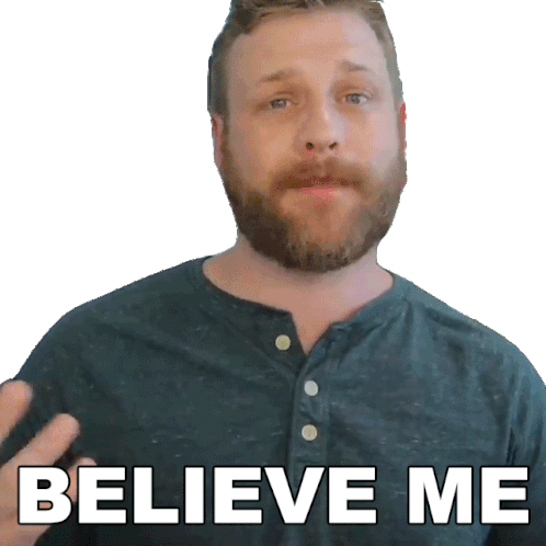 Grady Smith earnestly says 'Believe Me', emphasizing his sincerity and trustworthiness with a direct gaze.