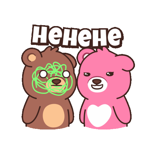 Bella and a pink bear snicker, with one bear having green scribbles on its face, accompanied by 'НЕНЕНЕ' text.
