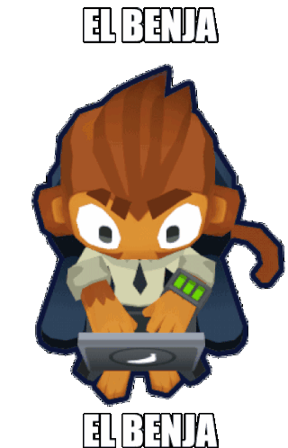 An animated sticker of Benjamin, the Bloons TD 6 hero, sitting with his laptop, featuring the text 'EL BENJA'.