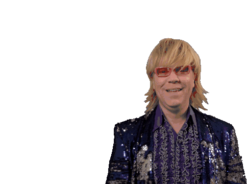 Bennie Solo enthusiastically gives a thumbs up, expressing fun and positivity with a flamboyant style.