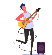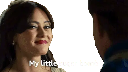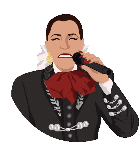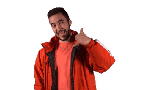 Beret, a man in a red jacket, sings and makes a 'call me' gesture, smiling and engaging with the viewer.