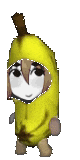 Beri Beribug, a cute VTuber character, walks while dressed in a bright yellow banana costume.