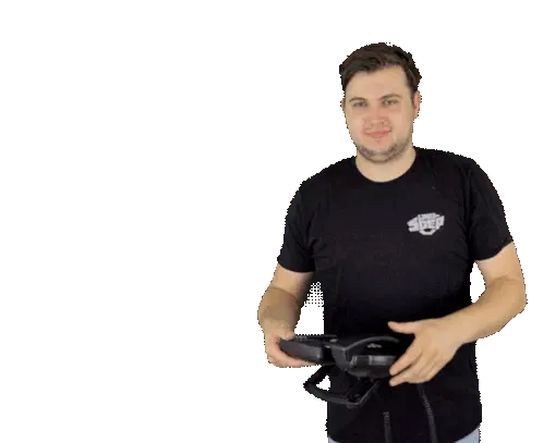 An enthusiastic man holding two power drills, moving them around happily, associated with Berk Music Linke Soep.