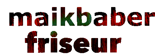 An animated sticker featuring the words 'maikbaber friseur' in red, textured letters, likely for a Berlin-based hairdresser.