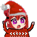 Berrycrepe in festive Padoru style, wearing a Santa hat and red sweater, celebrating the snowy season.