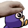 Animated pixel art sticker of Bert from Fall Guys, a purple bird with a towel, being gently patted.