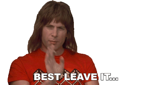 Nigel Tufnel from This Is Spinal Tap says "Best leave it..." then "Unsolved, really" with a dismissive gesture.