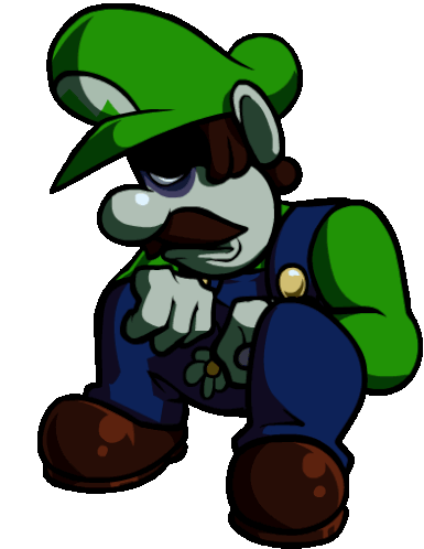 Beta Luigi from FNF Mario's Madness sits alone, looking sad in a down pose.