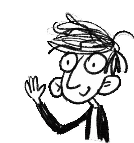 Betopetiches, a friendly doodle character, waves a cheerful 'Hi' or 'Hola' with a warm smile, perfect for greetings.