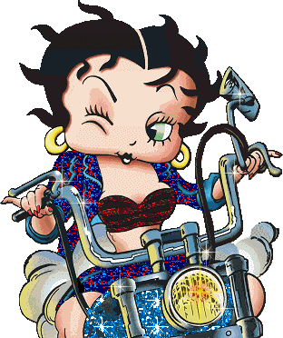 Betty Boop winks playfully while riding a sparkling motorcycle, adding a touch of classic charm and fun.