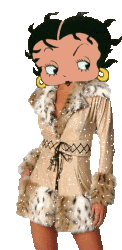 Betty Boop winks playfully, showcasing her iconic style and fur-trimmed jacket in this charming animated sticker.