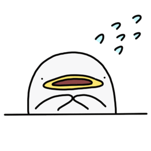 A cute, white, blob-like character peeks over a surface, looking bewildered and surprised with an open mouth and sweat drops.