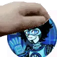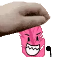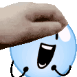 Animated sticker featuring Bfdi Bubble, a character from Battle for Dream Island, with a hand holding its smiley head.