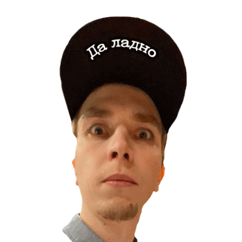 a man wearing a black hat that says да ладно