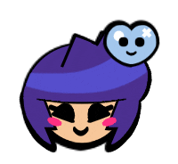 Bibi from Brawl Stars smiles sweetly as a cute, light blue heart with a cross symbol floats around her head.