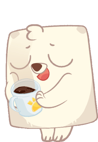 Bibipet Bibi, the cute bear-like character, happily sniffs the delightful aroma of a hot cup of coffee or hot chocolate.