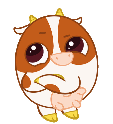 A cute cartoon cow from Bibipet with its tongue out, looking annoyed or disgusted, expressing a 'whatever' or 'no' sentiment.