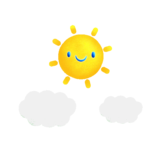 A cute, smiling sun shines brightly above two fluffy clouds, symbolizing God's light, hope, and peace, by Nastasya Kostrova.