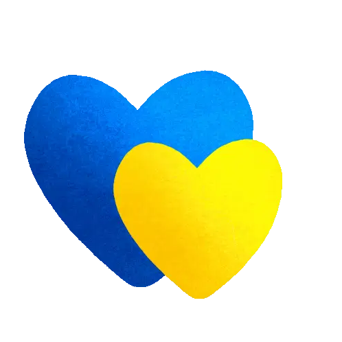 A vibrant yellow heart, symbolizing love and faith for Ukraine, created by Nastasya Kostrova.
