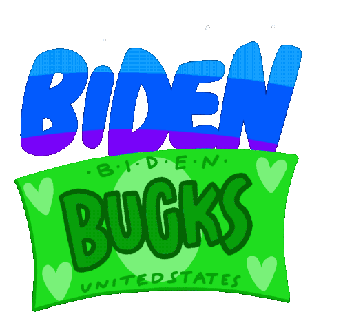 Animated sticker featuring 'Biden Bucks' and 'Biden Bills' with money, representing Joe Biden's stimulus and relief plans.