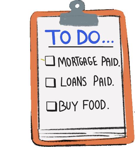 A to-do list showing mortgage, loans, and food paid for, expressing thanks for Biden Bucks and financial relief.