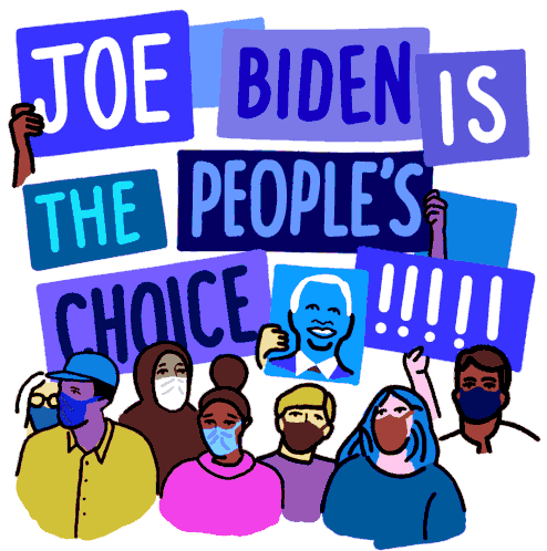 Diverse group of supporters proudly display signs declaring Joe Biden as the people's choice for the 2020 election.