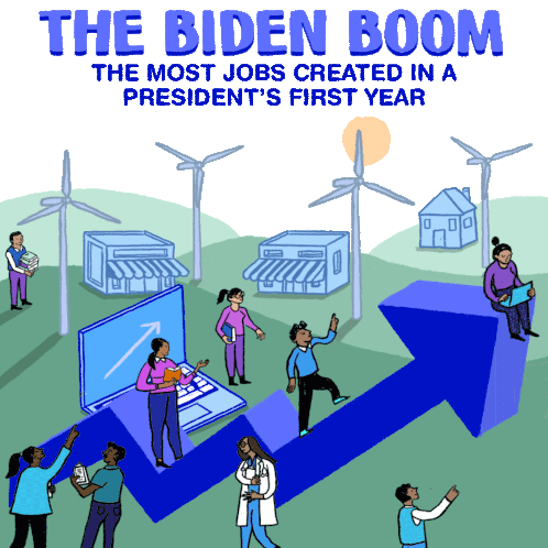 Celebrate Joe Biden's economic boom, highlighting record job creation, reopened businesses, and the sharpest drop in unemployment.