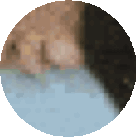 A highly pixelated and abstract image, possibly depicting a big belly or a face, with shades of brown and blue.