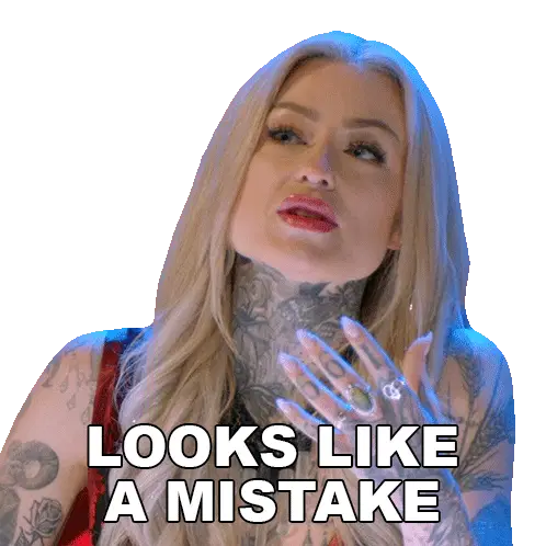 A cute white bear character looking embarrassed and regretful, with sweatdrops, indicating a big mistake or "my bad" moment.
