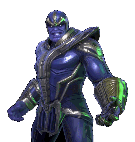 Thanos in his armored suit from Marvel Strike Force, ready for battle as the Mad Titan.