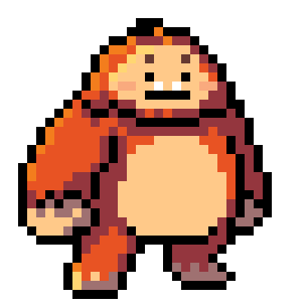 A charming pixel art Bigfoot or Sasquatch character stands still, then turns and walks away, disappearing off-screen.