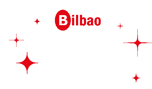 The red Bilbao logo with a sparkling effect, featuring animated stars around the city name.