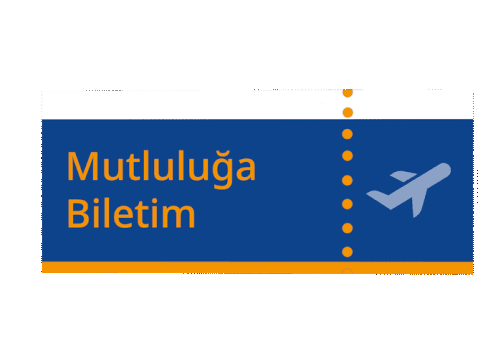 An animated flight ticket with the Turkish text 'Mutluluğa Biletim' meaning 'Ticket to Happiness', featuring an airplane icon.