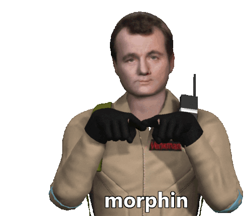 Bill Murray as Peter Venkman from Ghostbusters makes a heart gesture with "morphin" text, showing love.