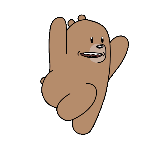Bill The Bear runs with wide eyes and raised paws, expressing excitement, surprise, or a playful 'on my way' urgency.