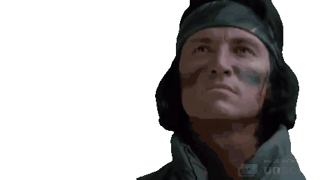 Billy Sole, with camouflage and a headband, looks up and then down in this transparent sticker from Predator.