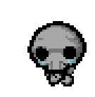 a pixel art drawing of a skull with tears in his eyes .