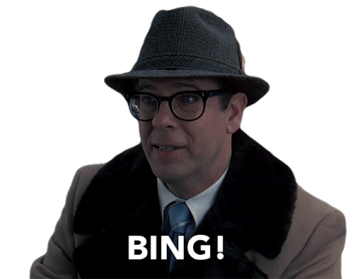 Stephen Tobolowsky as Ned Ryerson from Groundhog Day enthusiastically exclaims 'BING!' with a big smile.