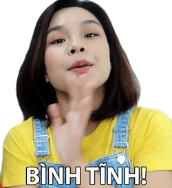 Anh Thư from Song ThưChannel says 'Bình Tĩnh!' (Calm Down!) with a reassuring gesture, encouraging patience and calm.