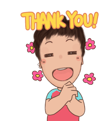 Binhminh Bongcoi, a cute animated character, expresses gratitude with a joyful 'Thank You!' and clasped hands.