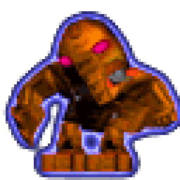 Pixel art Bionicle Matoran character with a purple border, performing a lively dance or wiggle, perfect for fun.