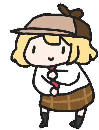 Nanashi Mumei from Hololive English wiggles her head in a cute chibi animated sticker.