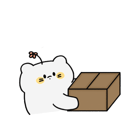 Cute white bear character holding a box of heart presents, with a flying heart-bird and floating hearts, celebrating a birthday.