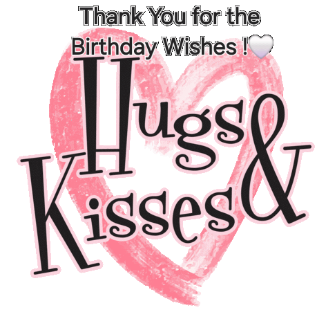 A charming pink heart animated with the message 'Thank you for the birthday wishes hugs and kisses,' perfect for expressing gratitude.